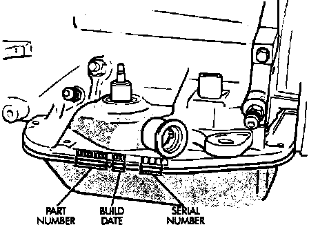 Transmission identification markings are cast in raised letters and numerals on the lower left side of the bell housing.