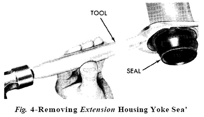 (3) To install a new seal, position seal in opening of extension housing and drive it into the housing with Tool C-3995 or C-3972 (Fig. 5).