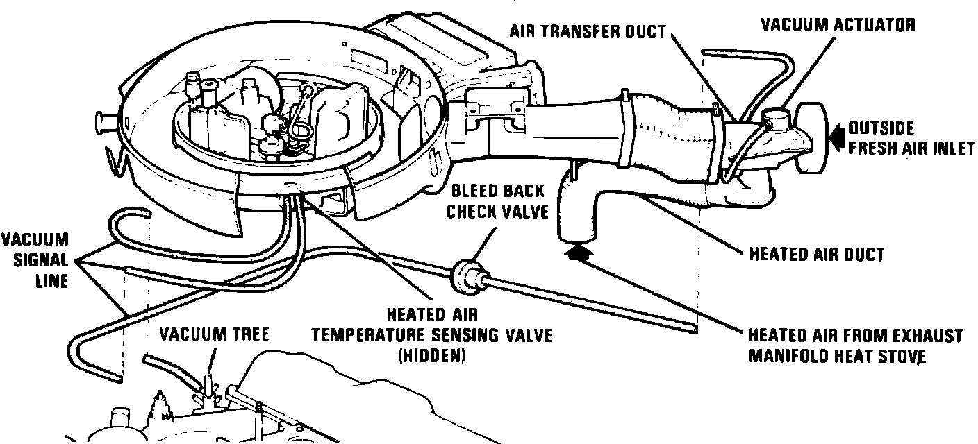 Heated inlet air system. 1982 - 88 exc. 4 cyl. engines: