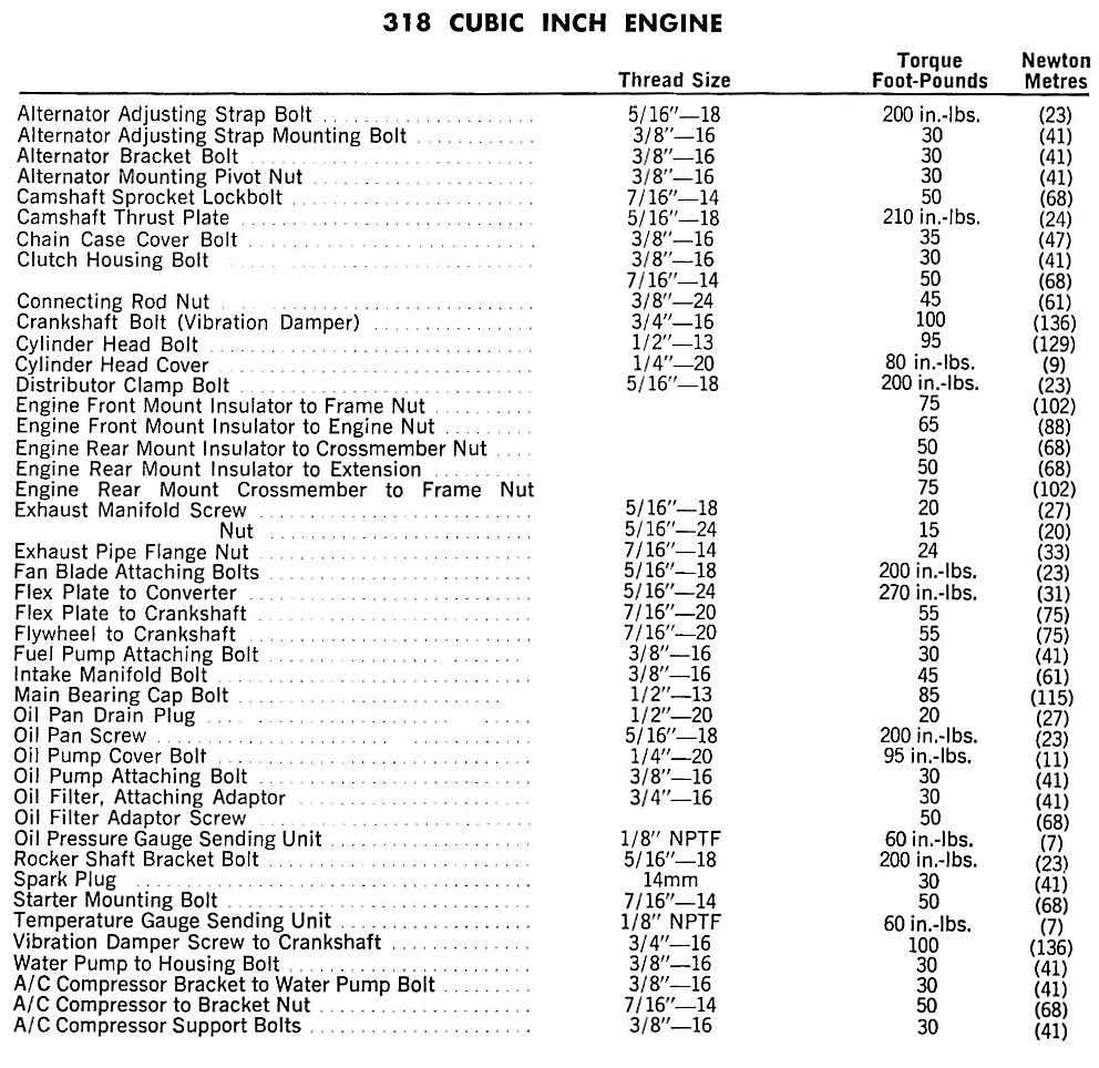 Fifth Avenue V8-318 5.2L VIN P 2-bbl