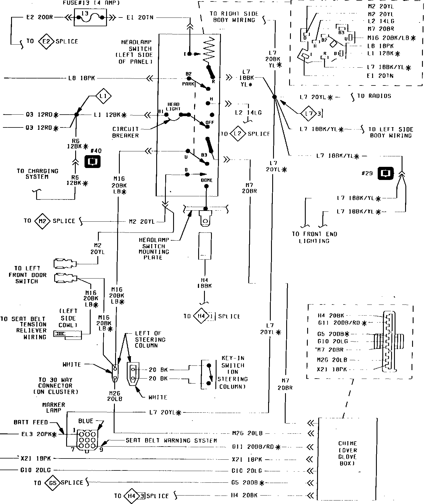 Fig. 21 Headlamp Chime, Switch & Seat Belt Warning System Wiring Circuit. 1983 Imperial (Part 2 of 2):