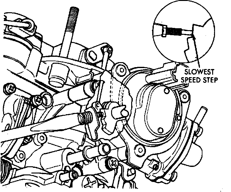 7. Open throttle slightly and place adjustment screw on slowest speed step of fast idle cam.