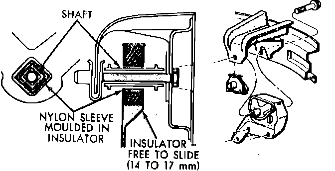 The engine mounts incorporate slotted bolt holes to permit side-to-side positioning of the engine, thereby affecting length of driveshaft. To check driveshaft length proceed as follows.