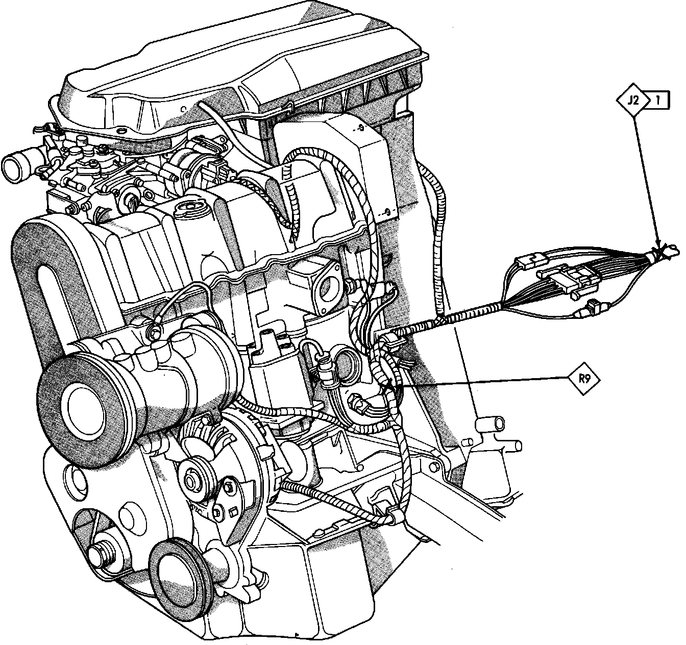 Fig. 138 Engine Harness Splice Locations. 4-135/2.2L Exc. Fuel Injection: