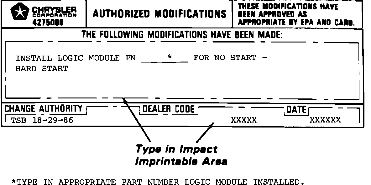 1 Authorized Modification Label PN 4275086