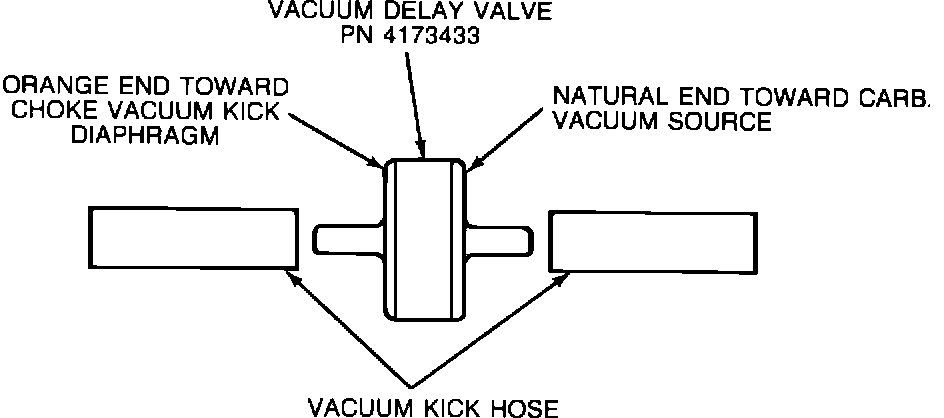 IMPORTANT: THE ORANGE END OF THE DELAY VALVE MUST BE ORIENTED TO THE VACUUM KICK DIAPHRAGM (FIGURE 1).