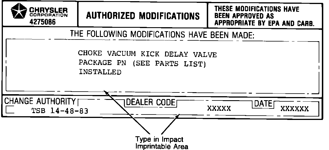 1 - Authorized Modification Label PN 4275086