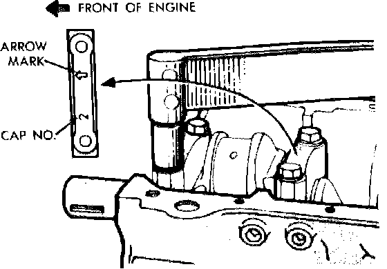 Install main bearing caps in sequence and ensure arrows on caps are pointed in direction of
