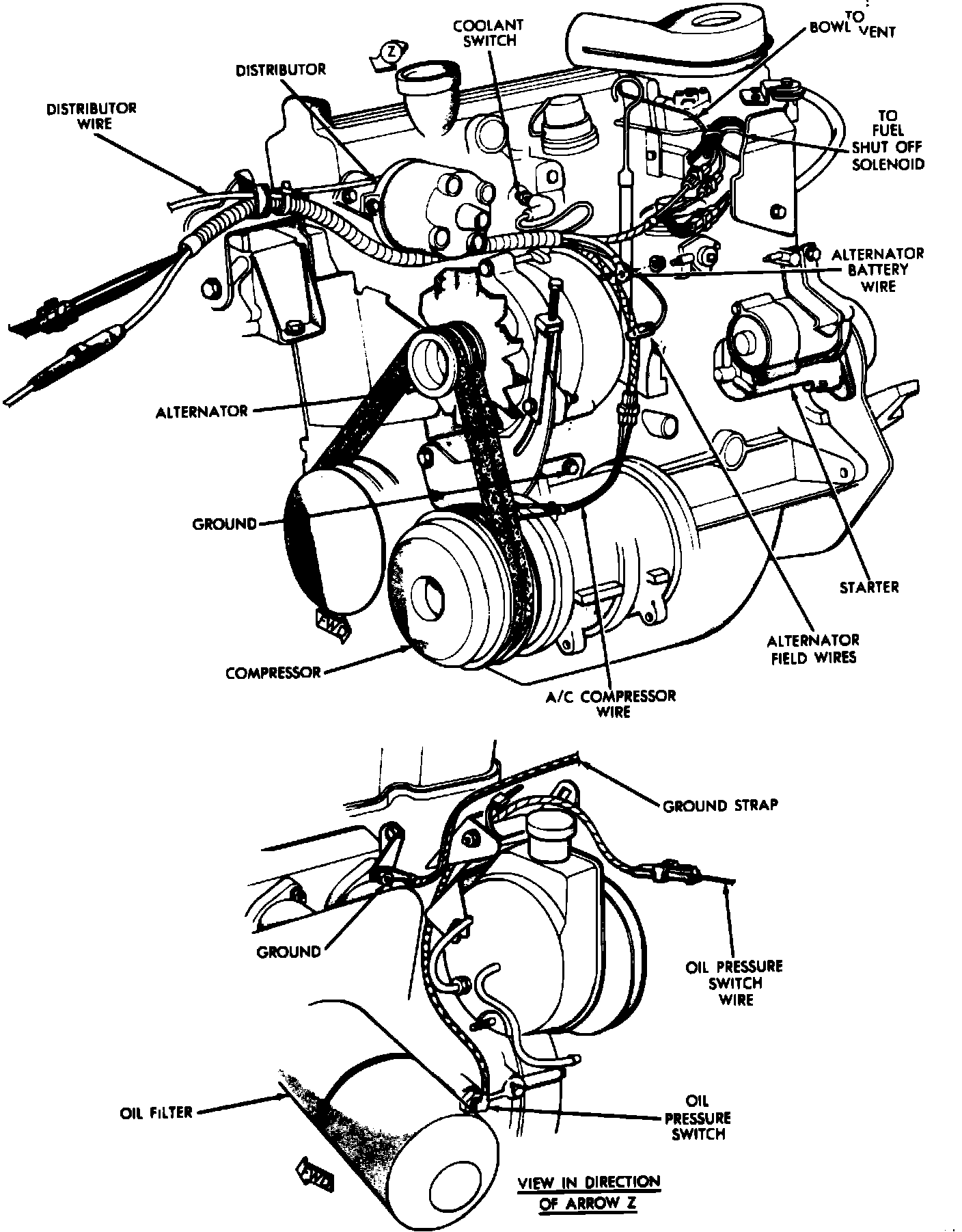 Compartment location. 1982 - 85 4-156/2.6L engine: