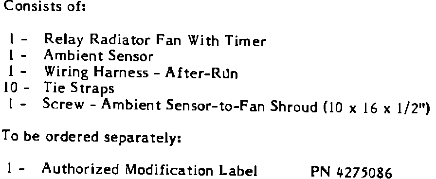AFTER-RUN RADIATOR FAN SERVICE PN 4318149
