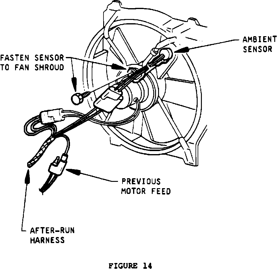 7. Connect after-run wiring assembly to ambient sensor and radiator fan motor wiring. Connect bullet of after-run wiring to two-way connector of production wiring for motor (Figure 14).