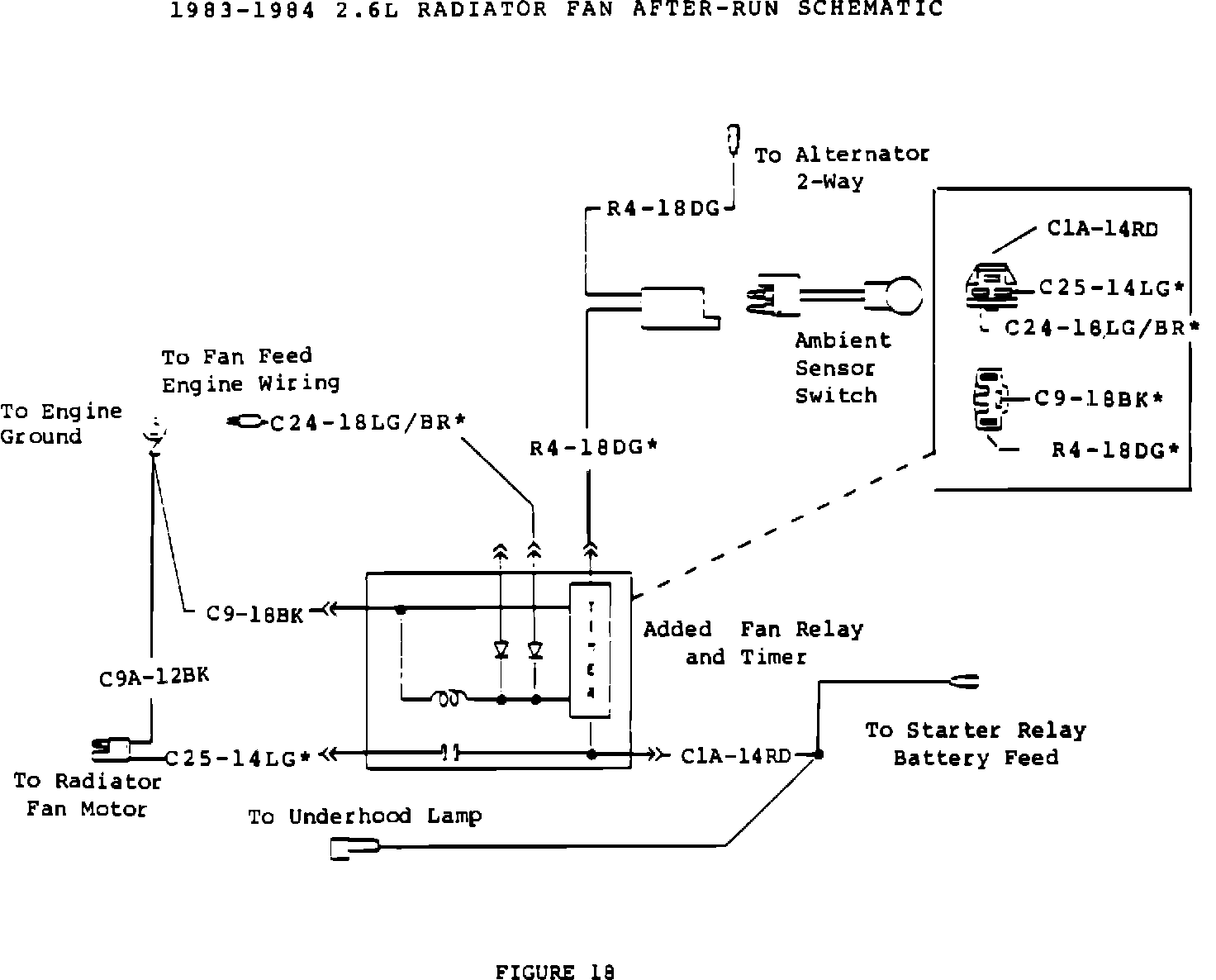 11. Dress yoke wiring toward the left side of car and tie wrap along hood release cable. Continue to dress rearward along wiring at left side of battery to added fan relay (Figure 16).