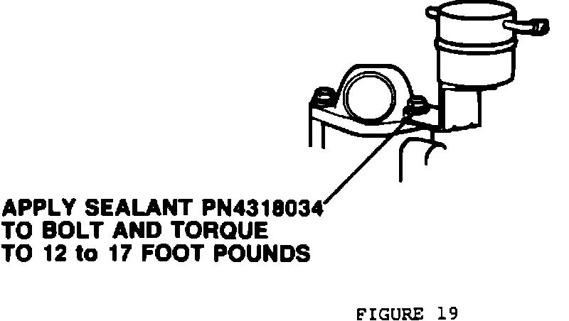 2. Remove the thermostat housing bolt which is closest to the carburetor. Attach the bracket on the reservoir to the thermostat housing, using the bolt just removed. When reinstalling the bolt, be certain to use Loctite/Mopar, PN 4318034, on the threads. Retorque the bolt to 12 to 17 foot pounds (Figure 19).