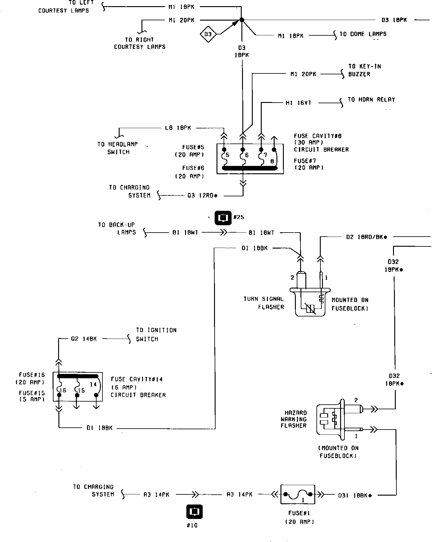 Fig. 23 Hazard Flasher & Turn Signal Wiring Circuit (Part 3 of 3). 1984 Less Tilt Wheel:
