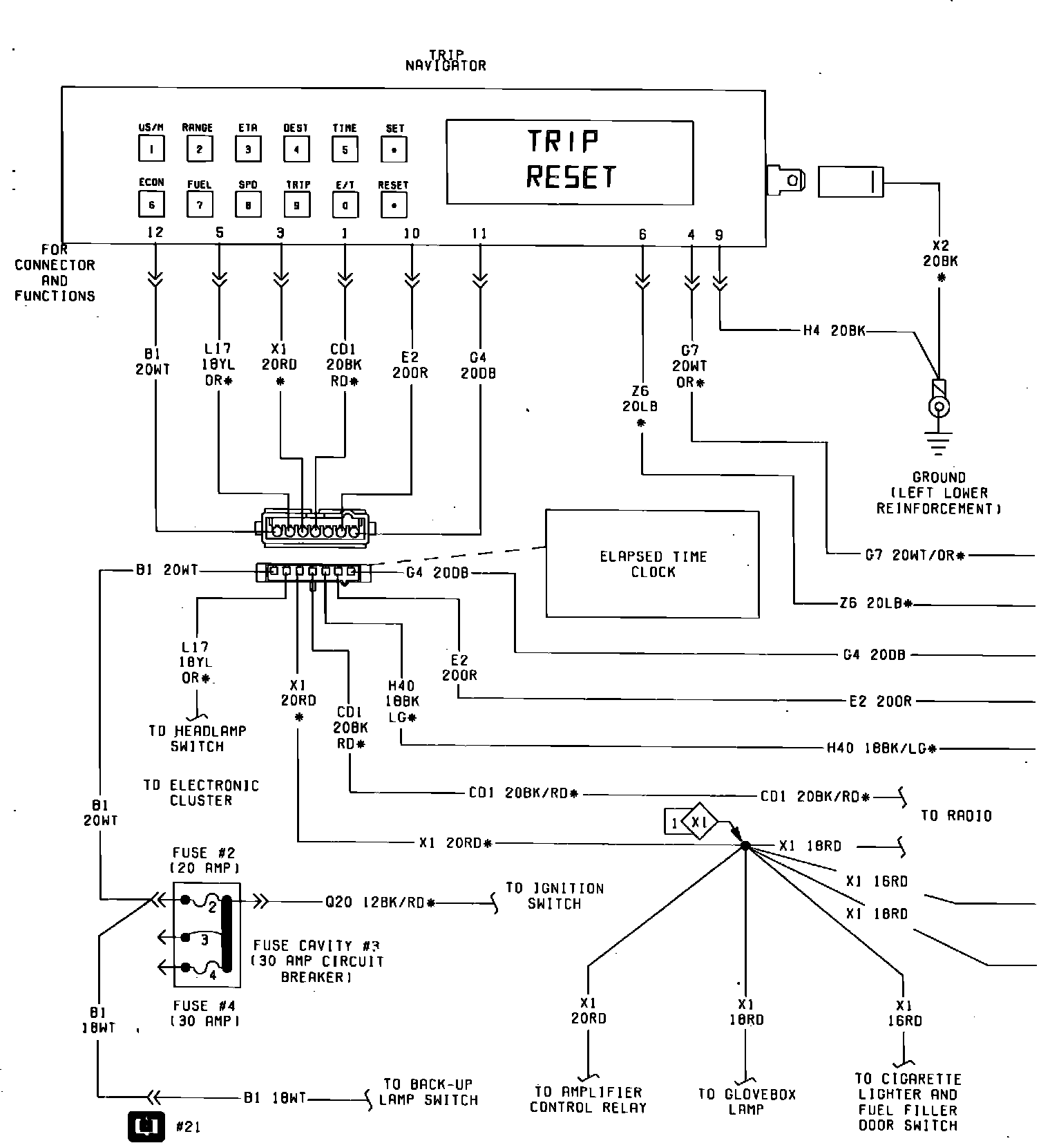 Fig. 21 Elapsed Time Clock & Trip Navigator (L/24 Funciton Electronic Voice Alert, Part 1 of 2) Wiring Circuit. 1984: