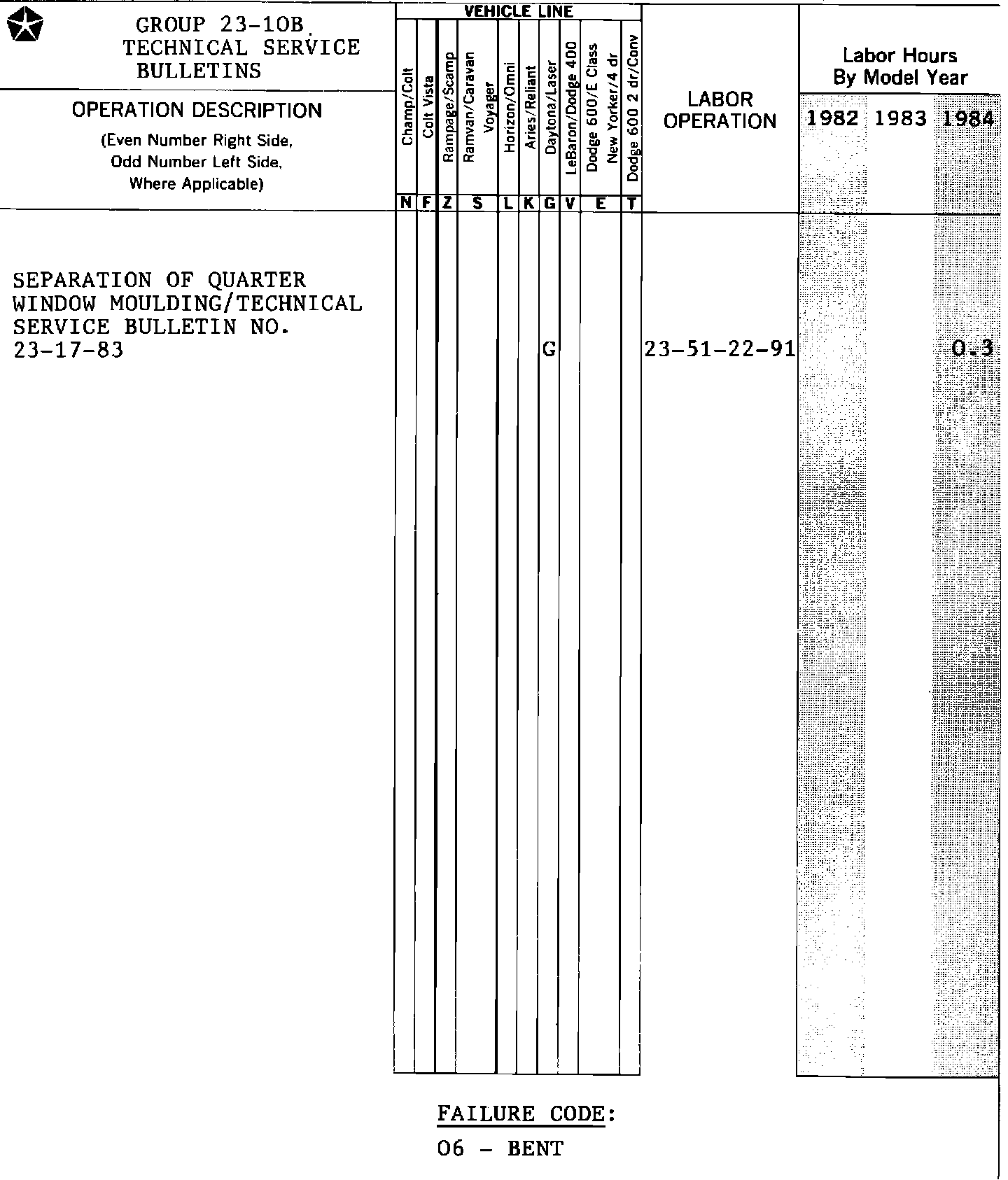 FAILURE CODE: 06 - Bent