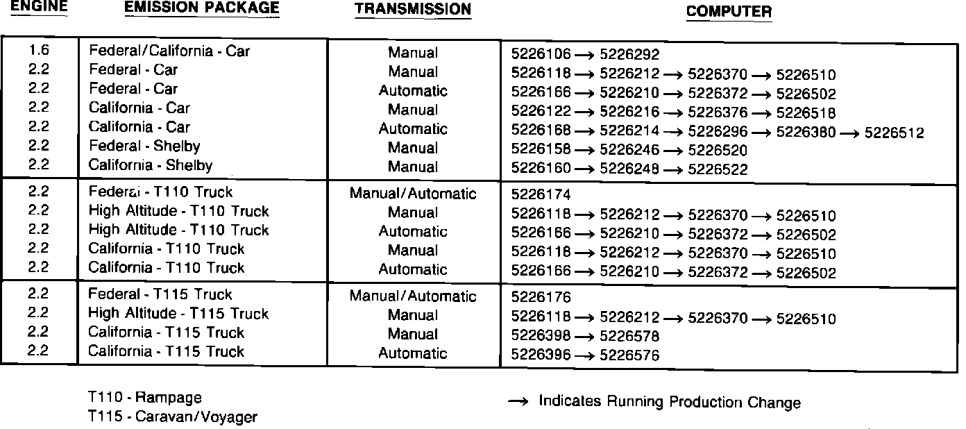 Lebaron Convertible L4-135 2.2L SOHC VIN D TBI