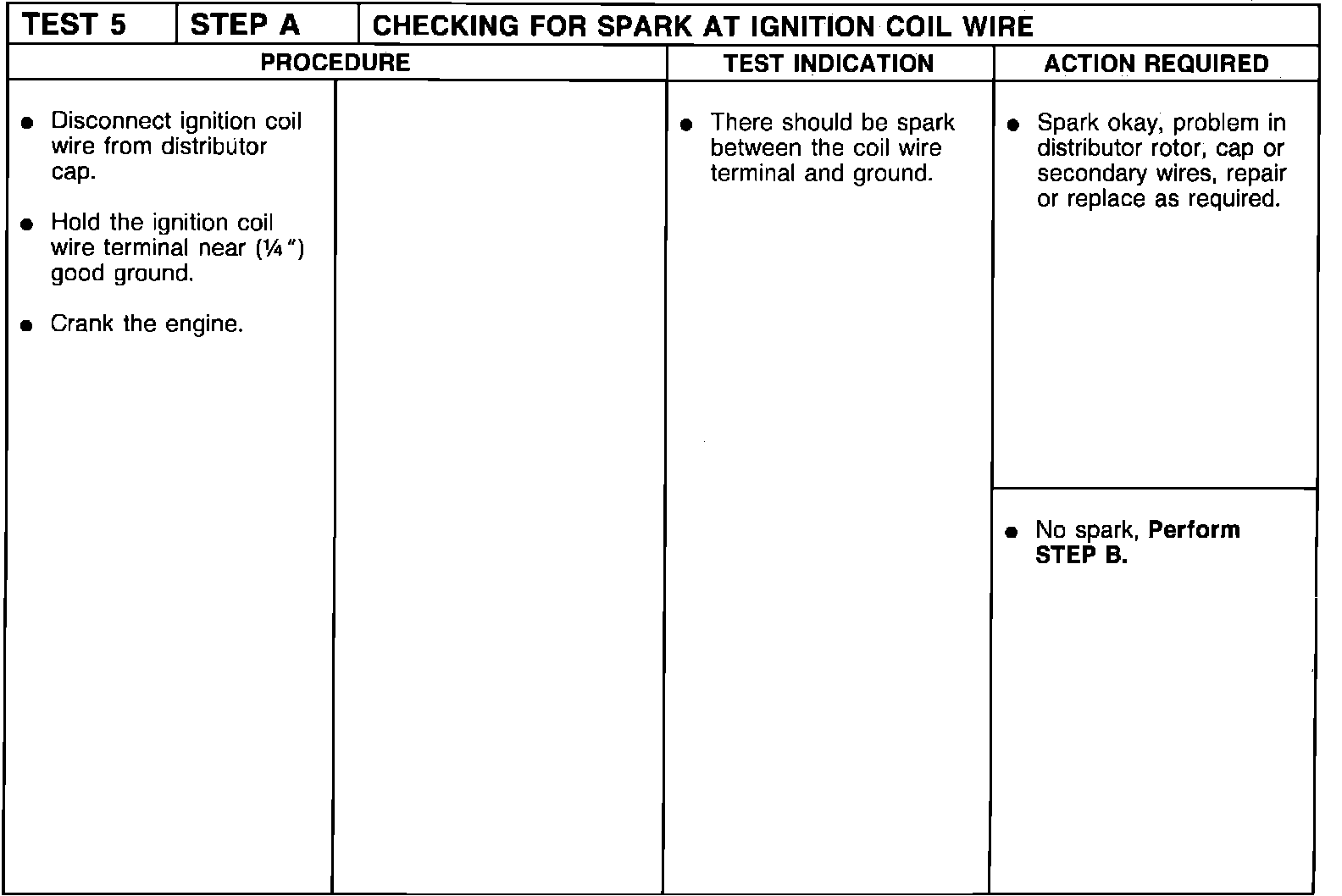 Test 5-Step A, Spark At Ignition Coil Wire: