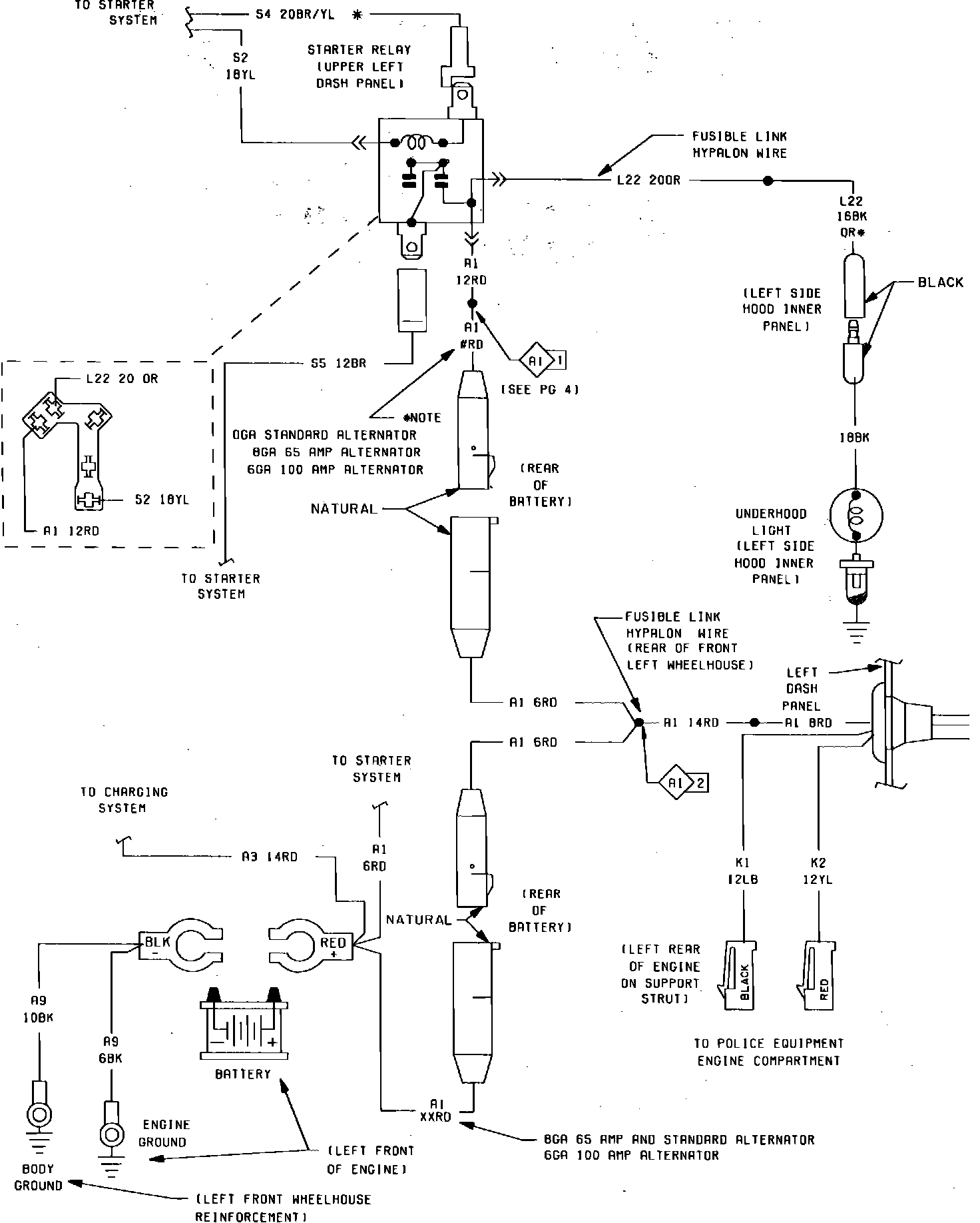 Fig. 9 Battery Accessory & Underhood Light Wiring Circuit (Part 1 of 2). 1985: