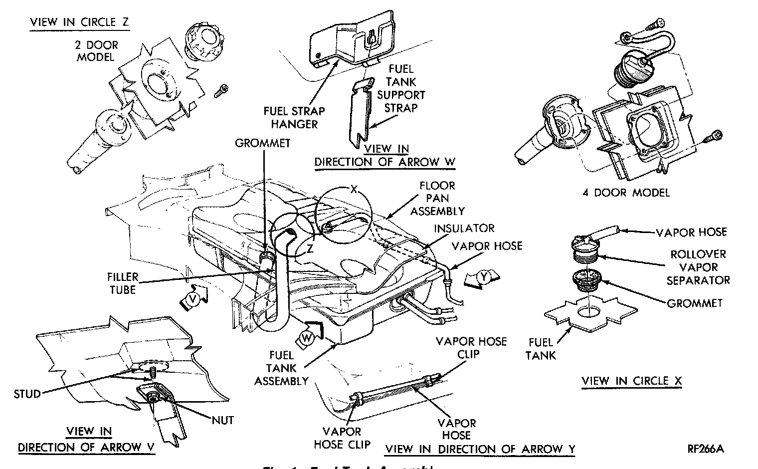 Siphon Hose Connection Location L/M, Z Except Fuel Injected Vehicles: