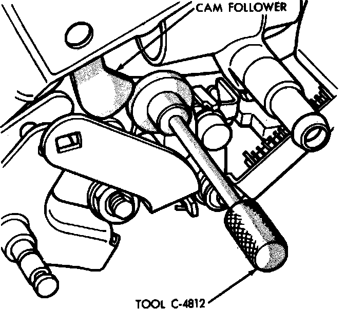 5. Open throttle and install tool No. C-4812 or equivalent on choke cam follower pin, Fig. 8.