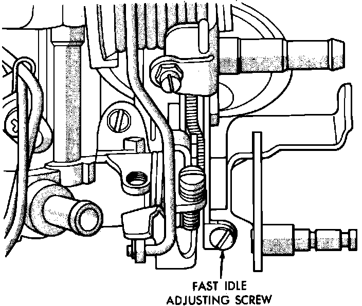 9. Return to curb idle, then place adjusting screw on slowest speed step of fast idle cam and readjust if necessary.
