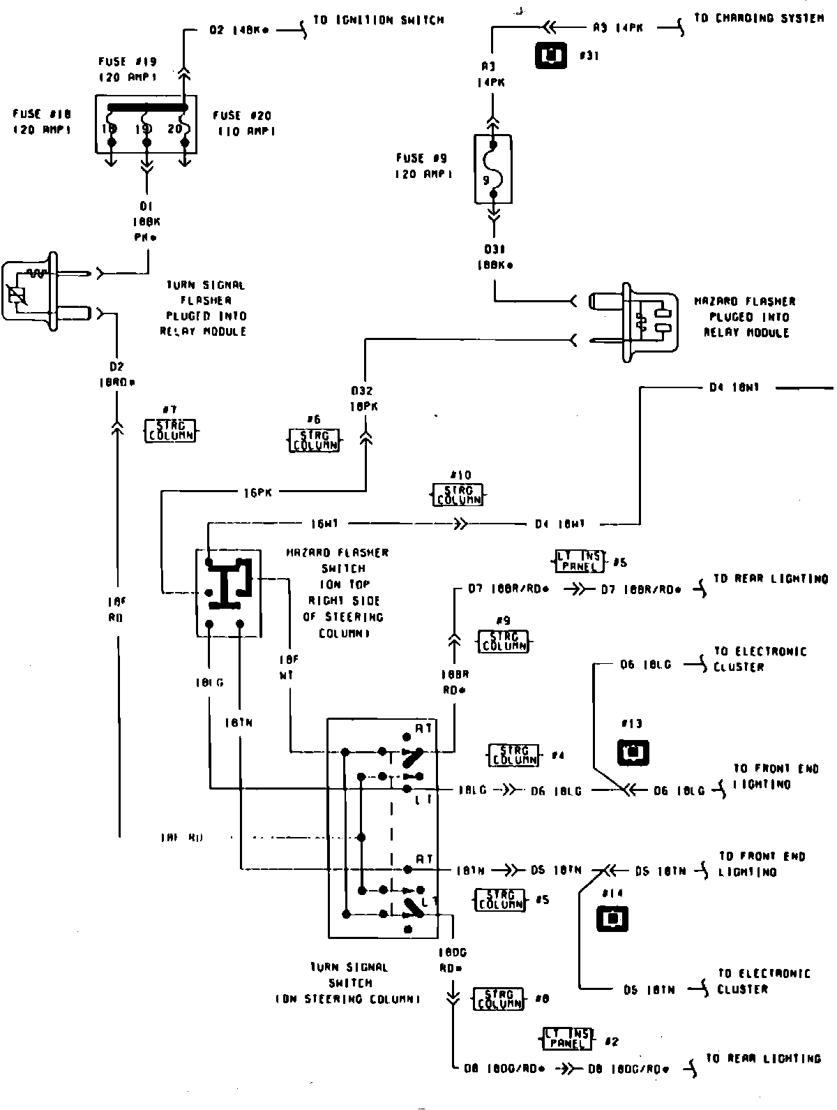 Fig. 21 Hazard, Stop & Turn Signal Flashers Wiring Circuit (Part 1 of 2). 1985:
