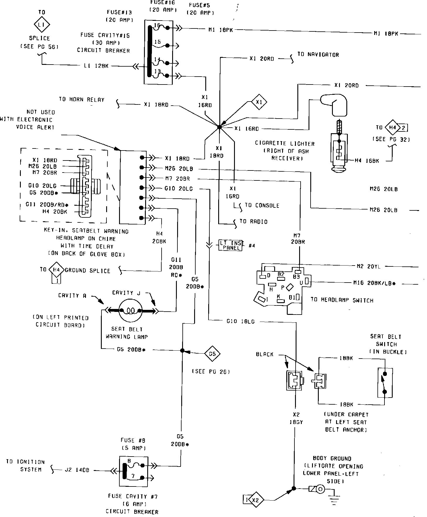 Fig. 14 Courtesy & Dome Lamps & Seatbelt Warning System Wiring Circuit 1985 Seatbelt: