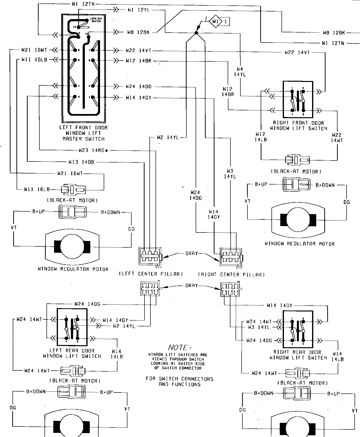 Fig. 34 Power Window Wiring Circuit (Part 1 of 2). 1985: