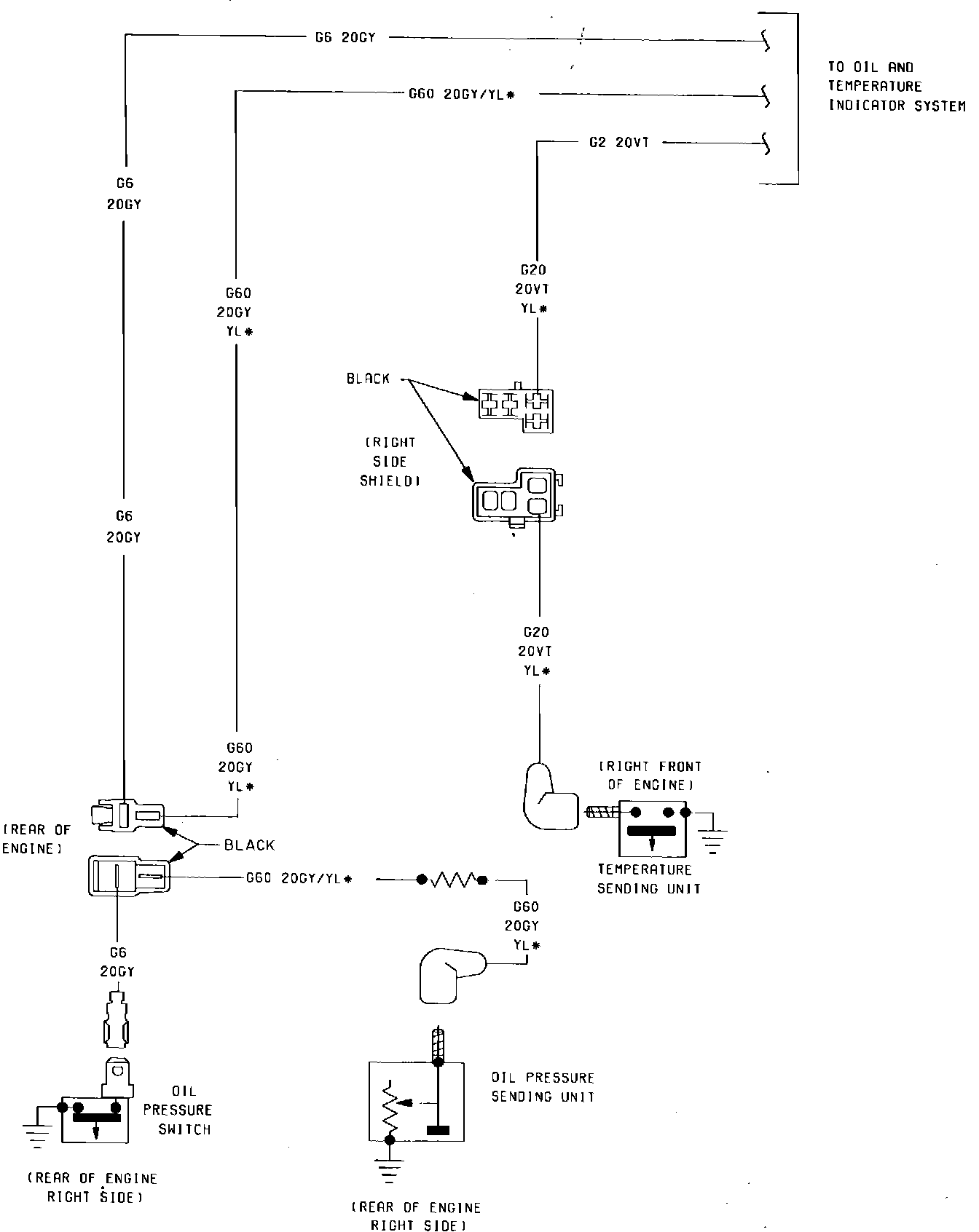 Fig. 59 Oil Pressure & Temperature Switch Wiring Circuit. 1985 W/2.6 Litre Engine: