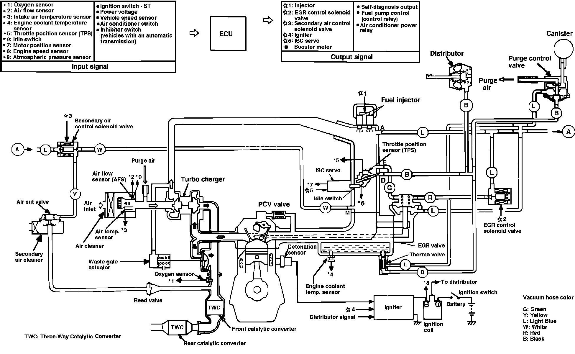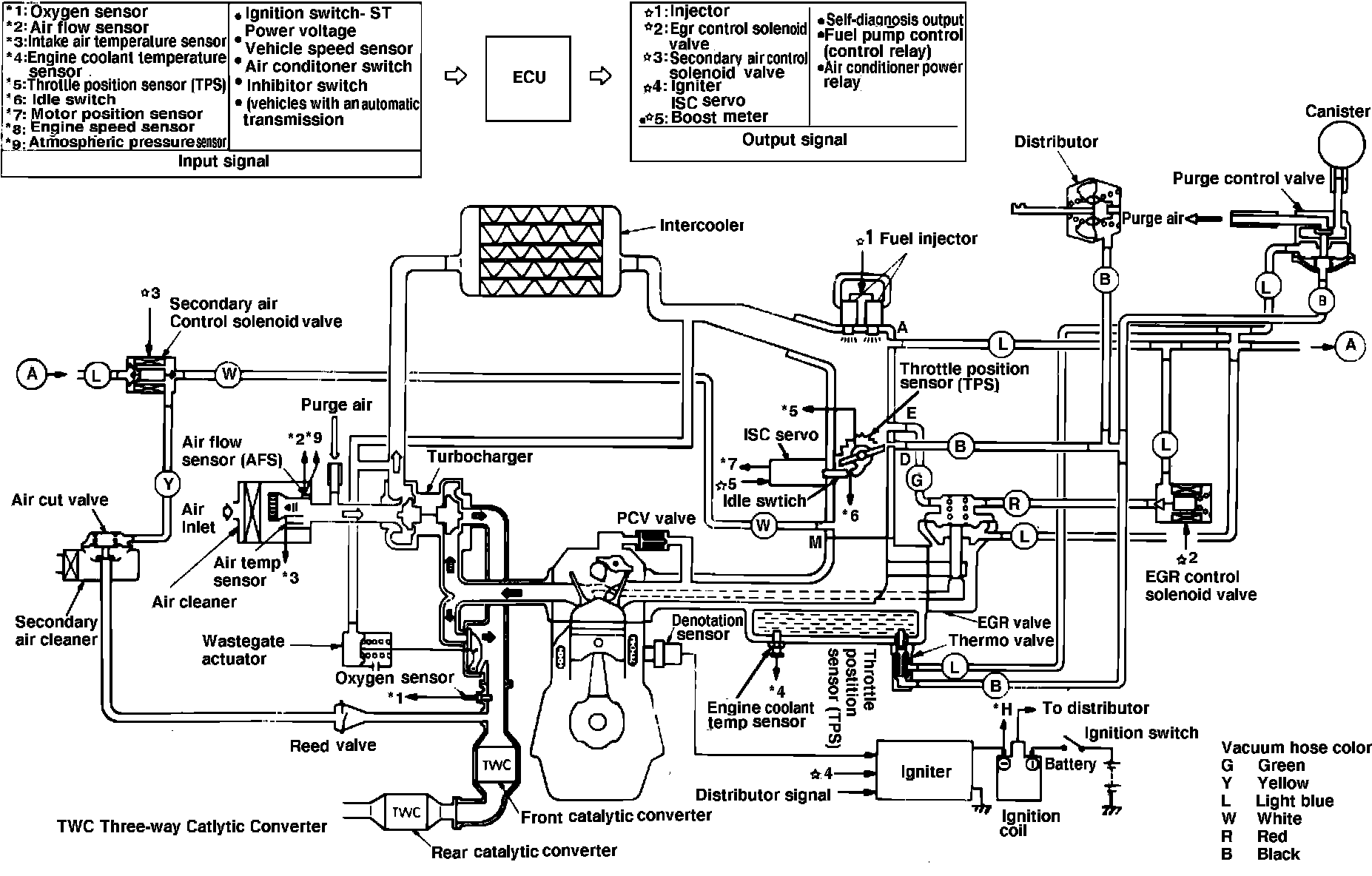 Fig. 3 Electronic control injection system diagram. 1987-89 Conquest less intercooler: