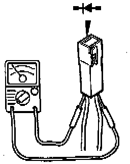 Using the ohmmeter, check the continuity by contacting the probes to the diode connector for two directions.