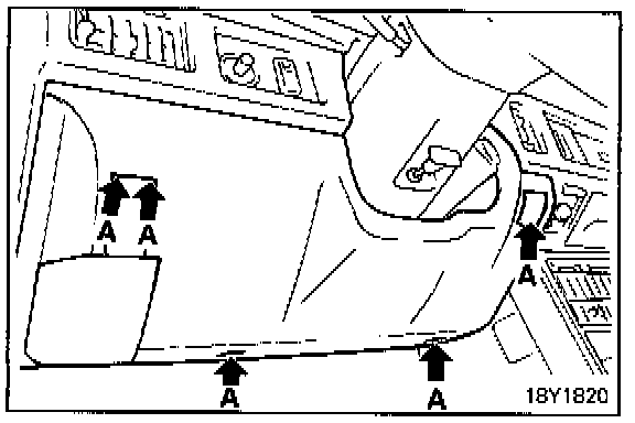Remove the hole cover and remove the knee protector attaching screws and then remove the knee protector.