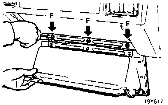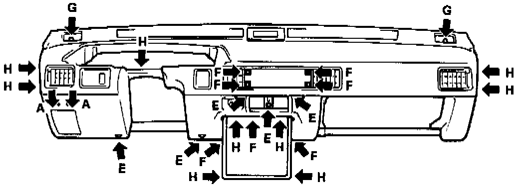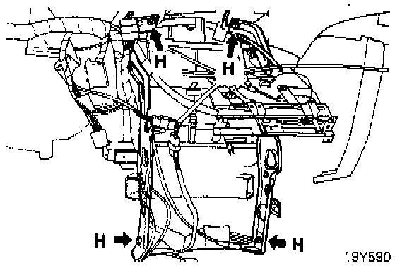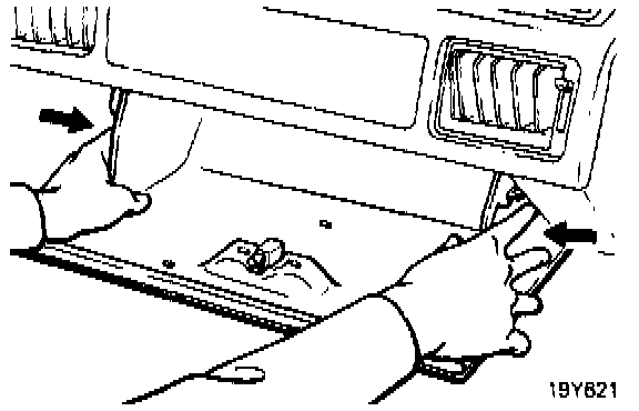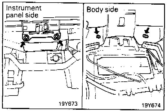 When the glove box is being installed, first temporarily tighten each screw, and then, after checking the left and right clearances between the glove box lid and the instrument pad while the lid is locked, tighten the screws completely.