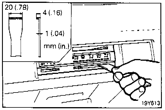 2. Insert the tool shown in the illustration into the lever hole of the heater control panel, and pull to remove. Remove the connector for the control panel light.
