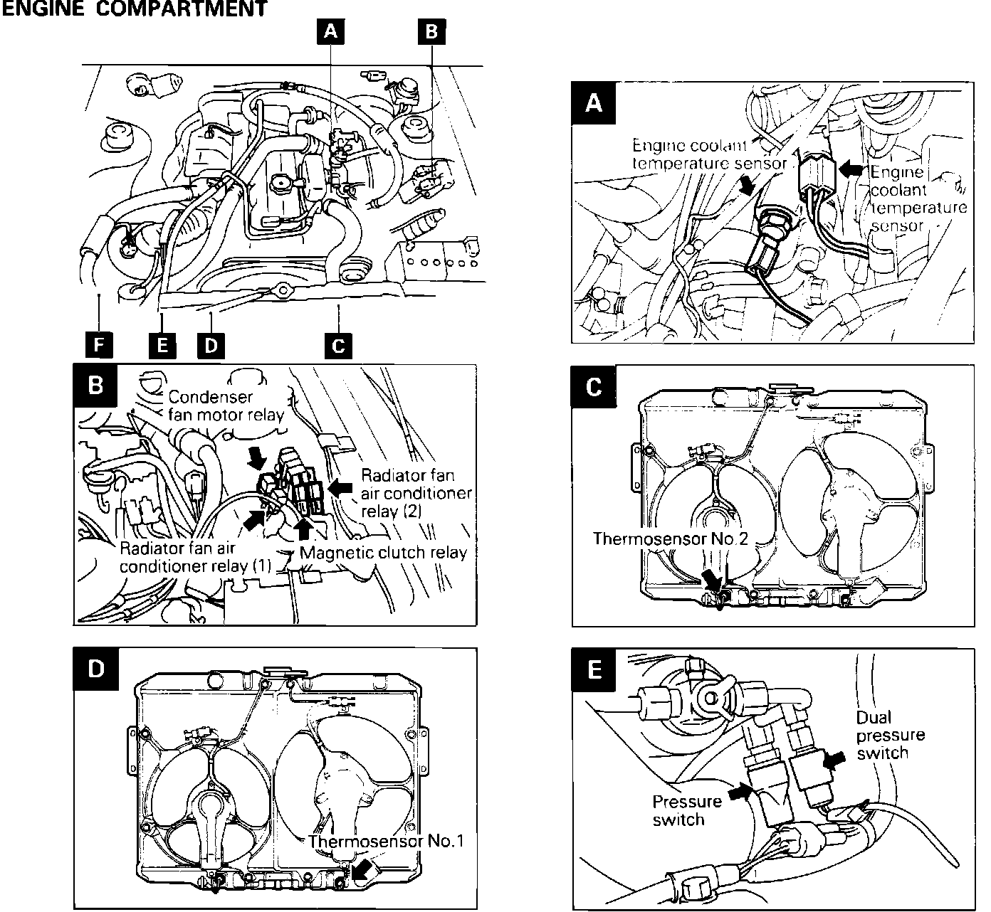 Radiator fan, air conditioner relay (1),(2) B