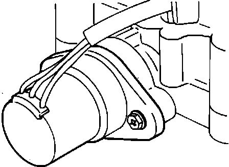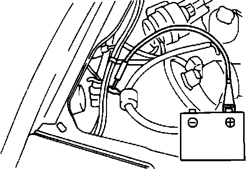 The fuel pump drive terminal (shown hooked-up) is located on the right side of the engine compartment behind the air cleaner housing.