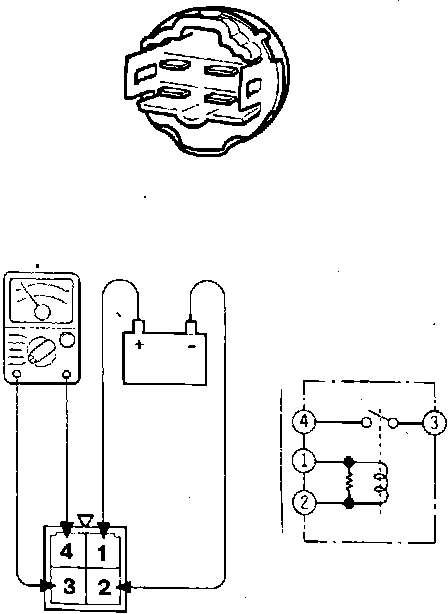 1. With relay disconnected, use suitable ohmmeter to check continuity between terminals 1 and 2. Continuity should exist. Check for continuity between terminals 3 and 4. Continuity should not exist.