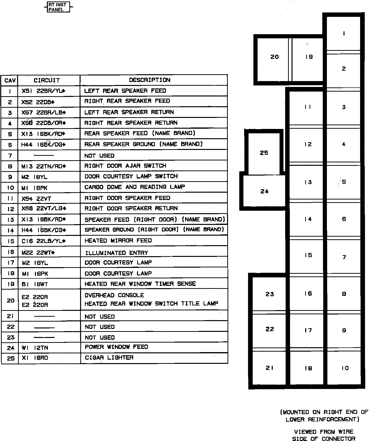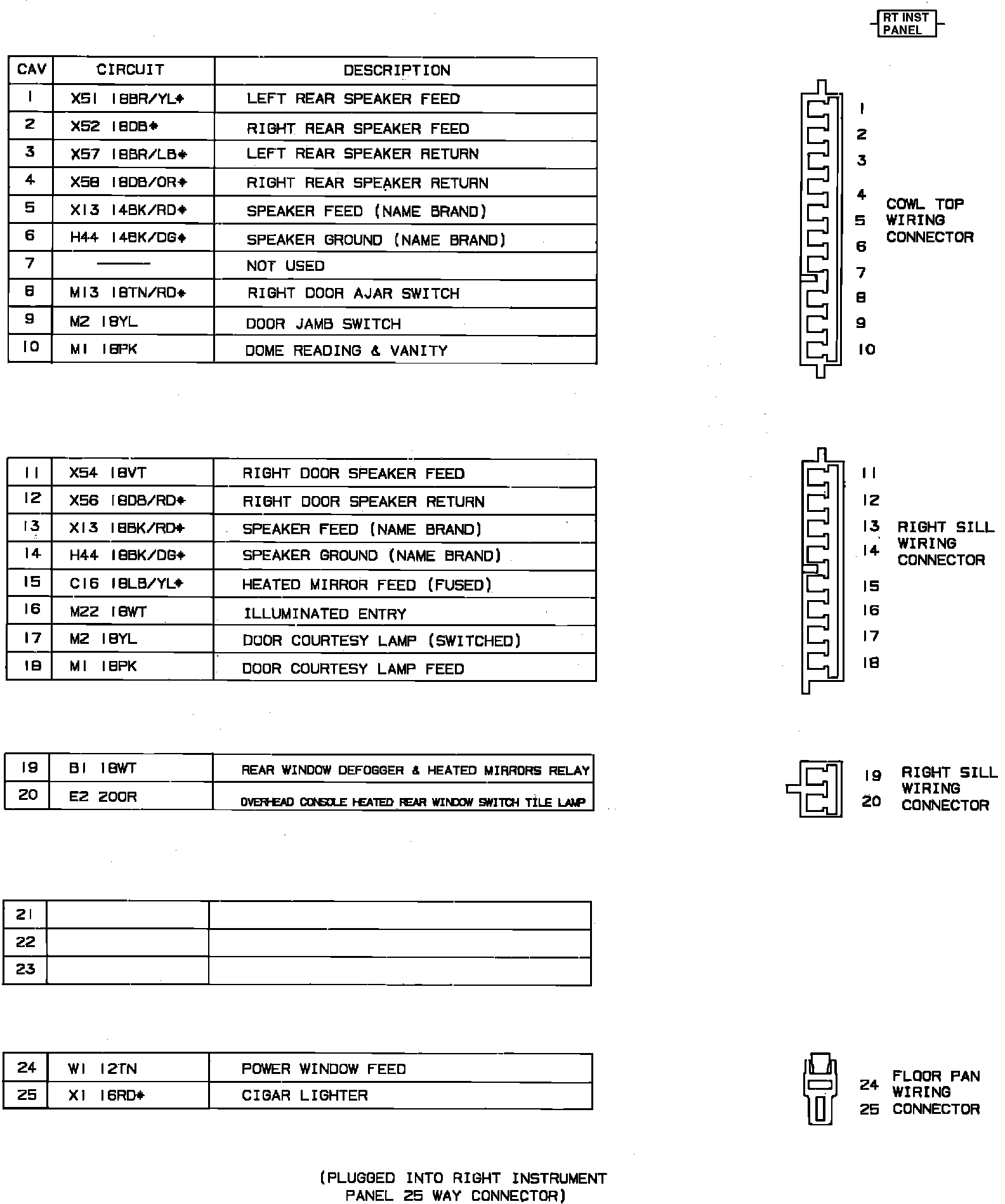 Body To Instrument Panel Connectors, Right Side (Part 1 of 2):