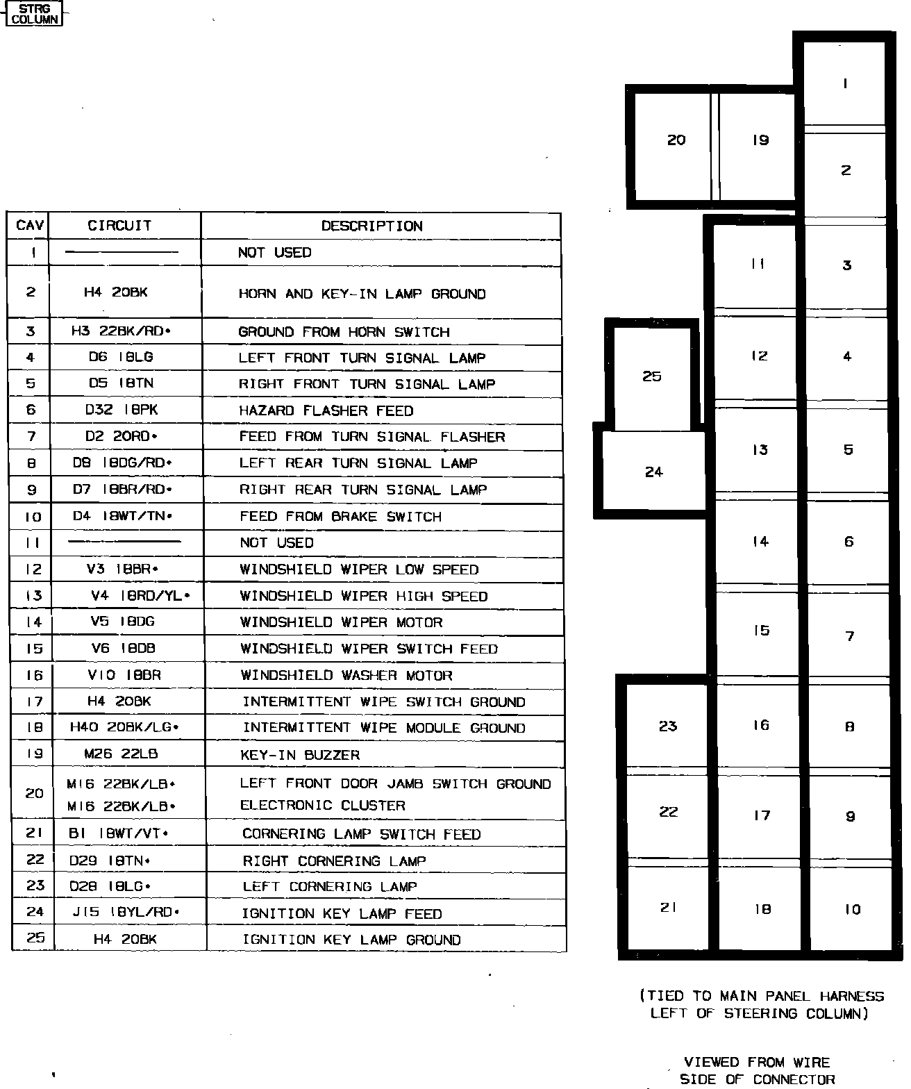Instrument Panel To Steering Column Connectors (Part 2 of 2):
