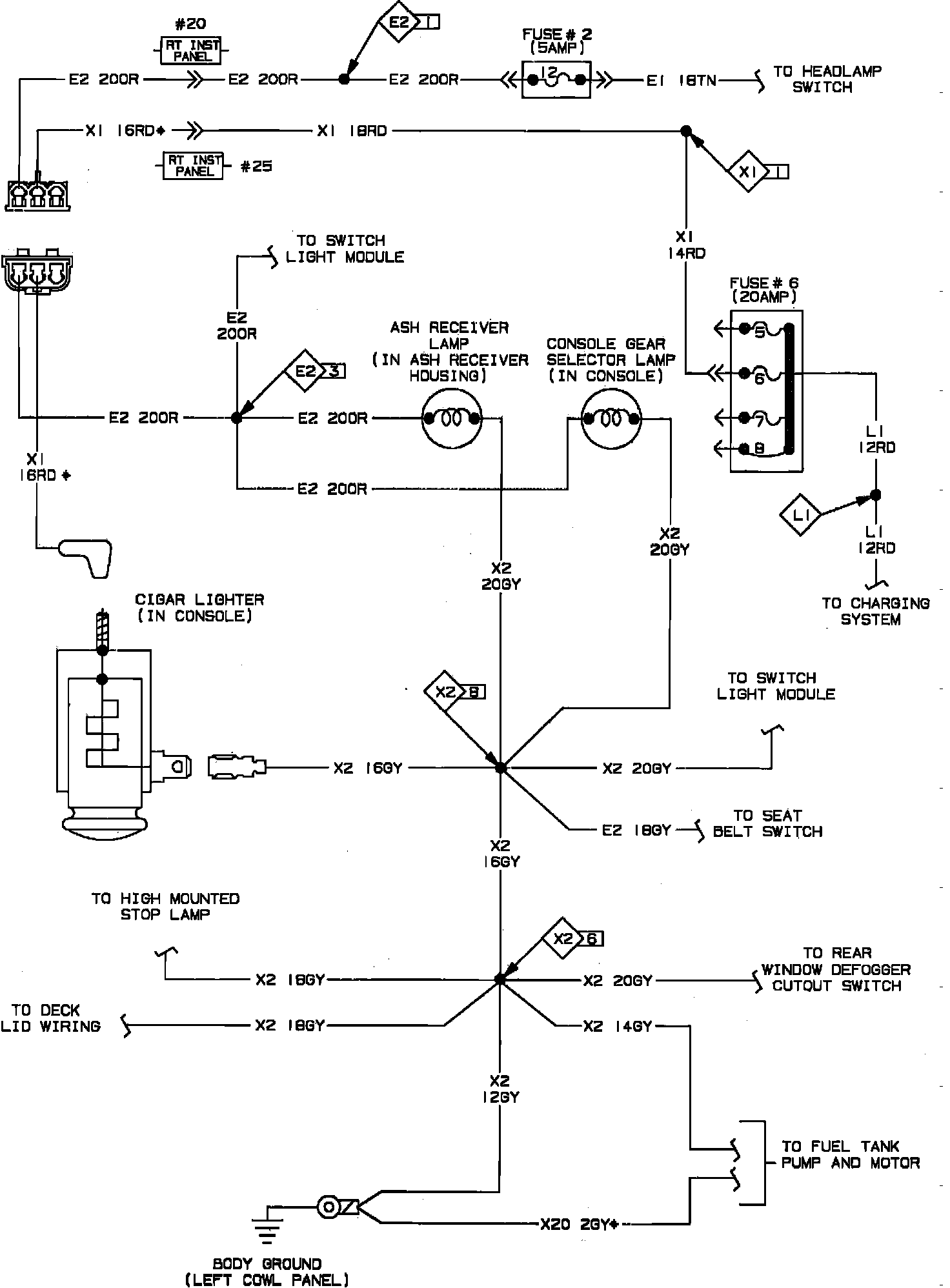 Console Lighting Wiring Circuit. Convertible:
