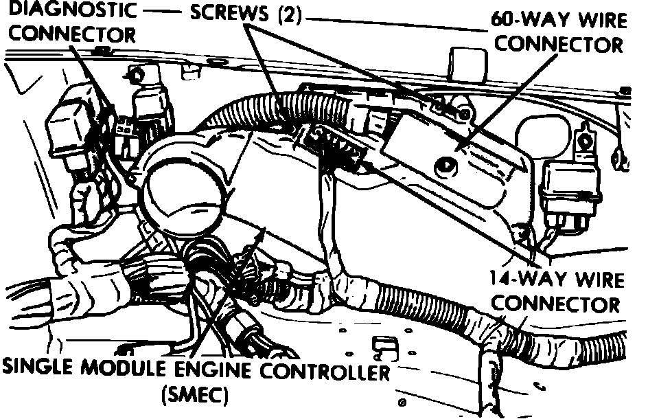 3. Disconnect 14-way and 60-way module electrical connectors, Fig. 10.