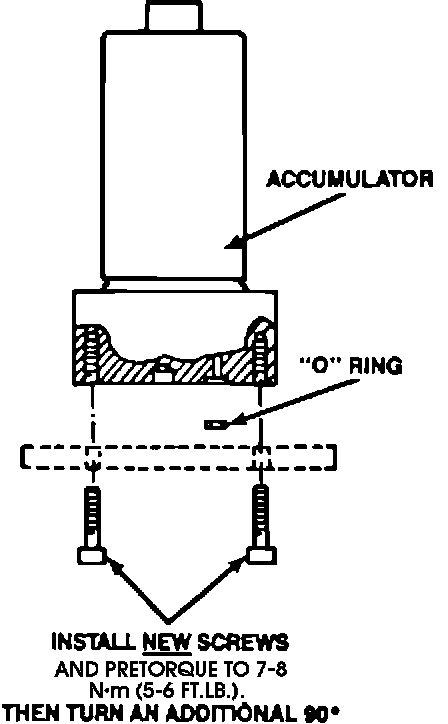 3. Install accumulator to hydraulic assembly using new M6 screws provided in the package and torque to 5-6 lb-ft (7-8 N-m).