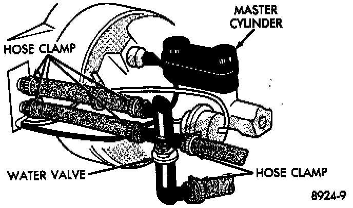 3. Disconnect vacuum line and heater hoses from water control valve (mark the hoses to assure correct valve installation).