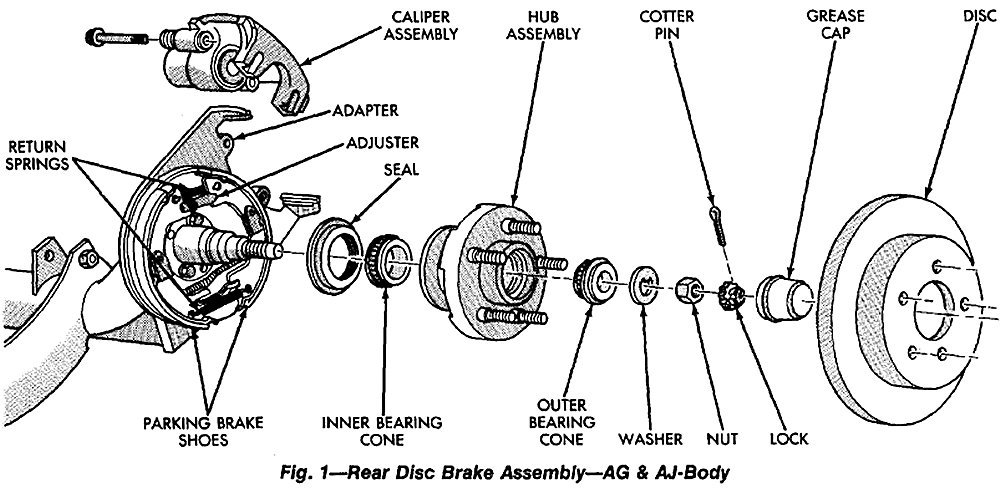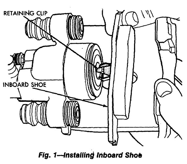 (2) Install inboard brake shoe by inserting shoe retaining clip into piston cavity (Fig. 1).
