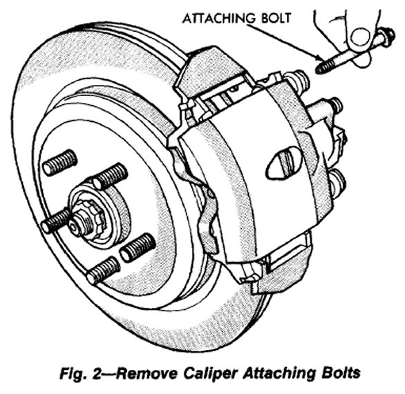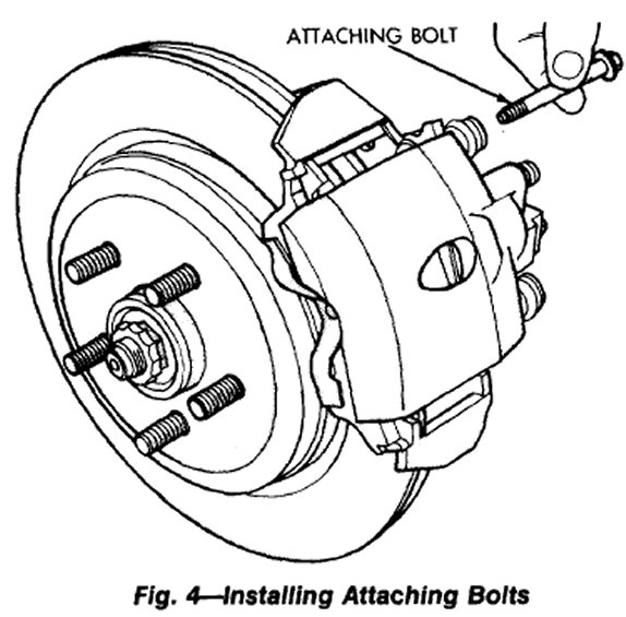 (6) Install caliper attaching bolts and torque to 17.5-25.8 N.m (155-230 in. lbs.) (Fig. 4).