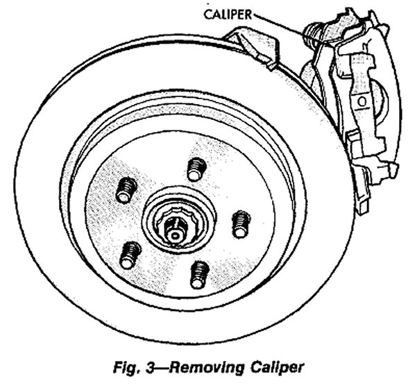 (4) Lift caliper away from adapter rails (Fig. 3).