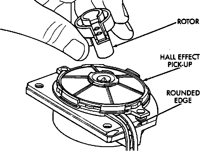 The Hall effect assembly is located in the distributor housing.