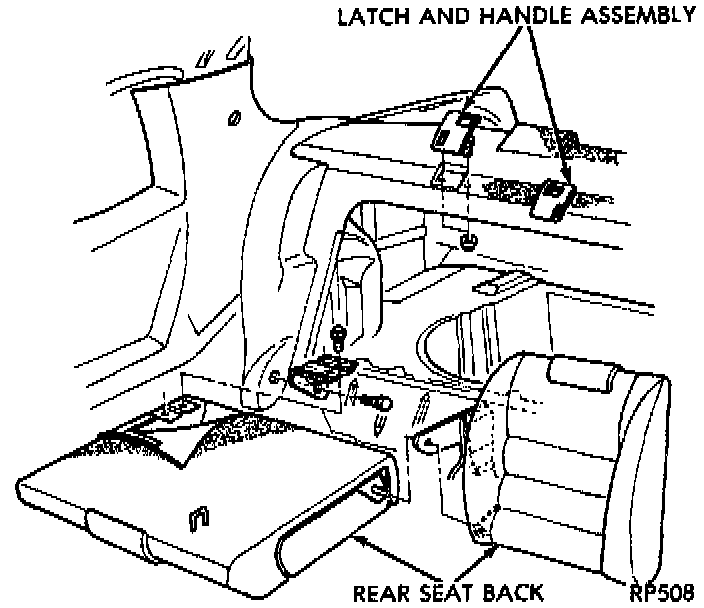 1. Hinge seat back forward and disengage push-in fasteners holding carpet backing to trunk floor.