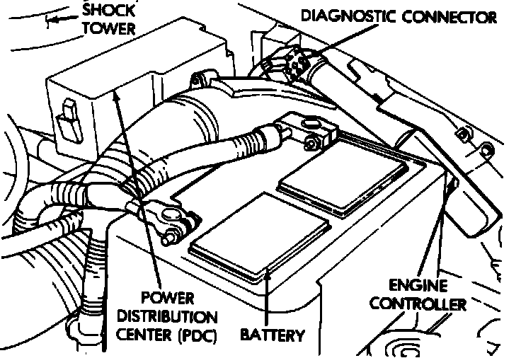 1. Connect the scan tool to the diagnostic connector located in the engine compartment near the Single Board Engine Controller (SBEC).